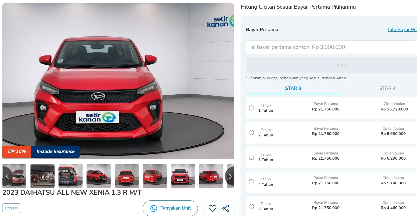 Sobat Setir bisa membawa pulang unit ini dengan cicilan mulai Rp4 jutaan per bulan untuk tenor 5 tahun. Cek simulasi kreditnya, berikut ini: