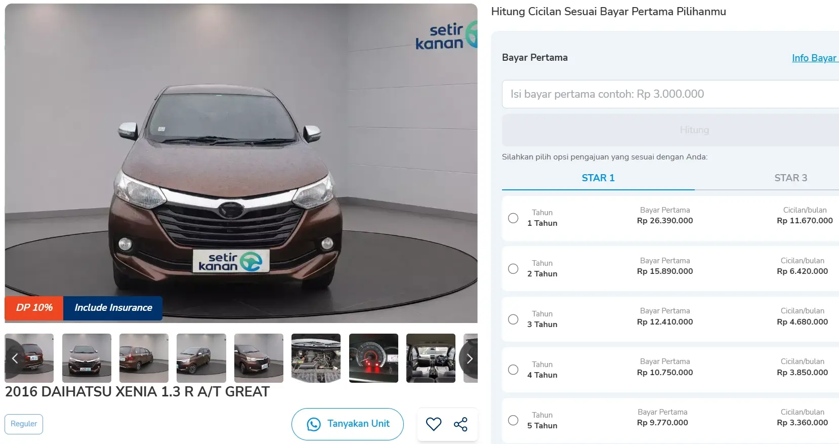 Di Setir Kanan tersedia banyak mobil bekas dengan kondisi prima sehingga lebih aman dan terpercaya. Apalagi, Sobat Setir juga bisa menyesuaikan pilihan mobil berdasarkan lokasi, budget, hingga kebutuhan.