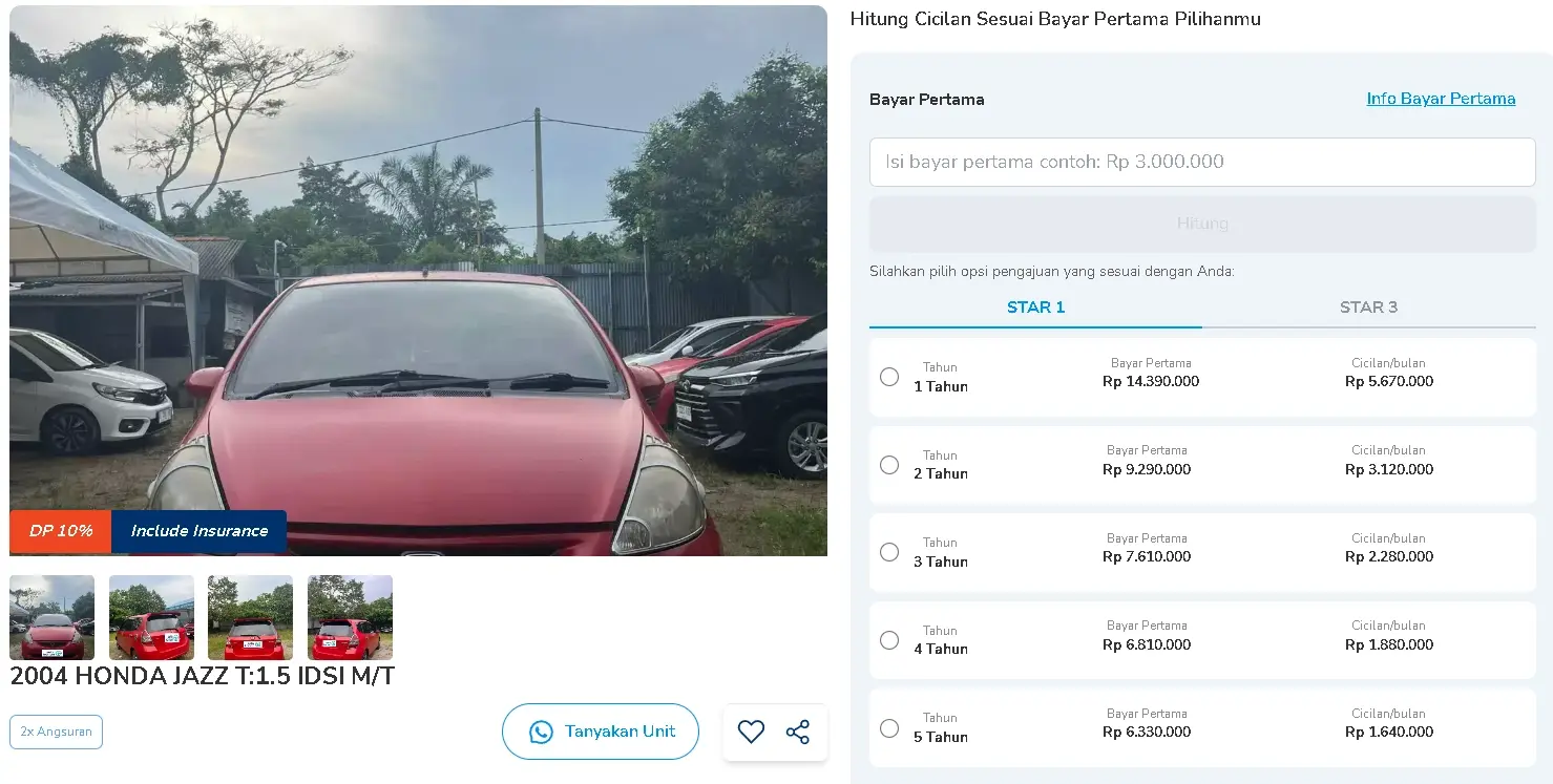 Kamu juga bisa mendapatkan ragam pilihan mobil bekas harga cerdas dengan promo DP 0% untuk unit tertentu, serta cicilan terjangkau mulai dari Rp2 jutaan per bulan atau setara sekitar Rp70 ribuan per hari, dengan pilihan tenor fleksibel hingga 5 tahun.