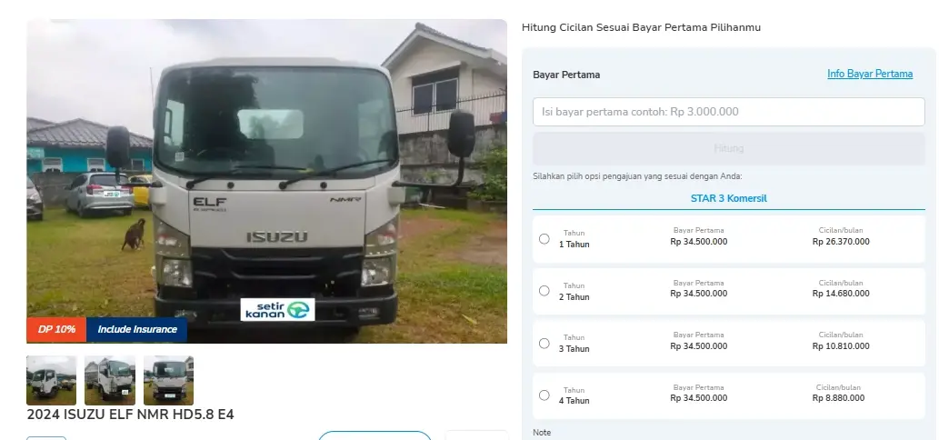 Selanjutnya, ada kendaraan niaga 2024 Isuzu ELF NMR HD 5.8 E4 dengan kilometer 25.865 km dan warna putih.