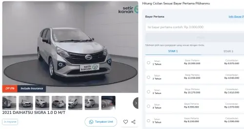 Untuk unit 2021 Daihatsu Sigra 1.0 D M/T, cicilan mulai dari Rp2 jutaan dengan tenor hingga 5 tahun, lebih ringan dan fleksibel untuk persiapan mudik.