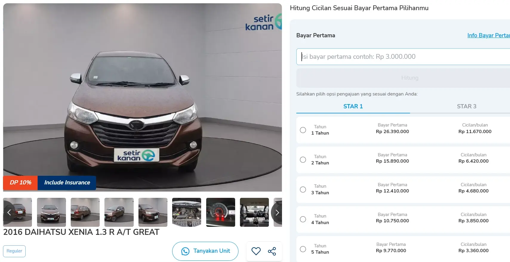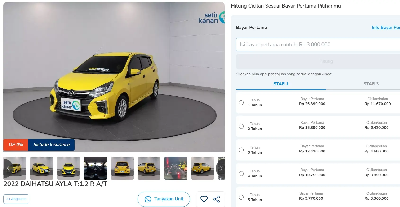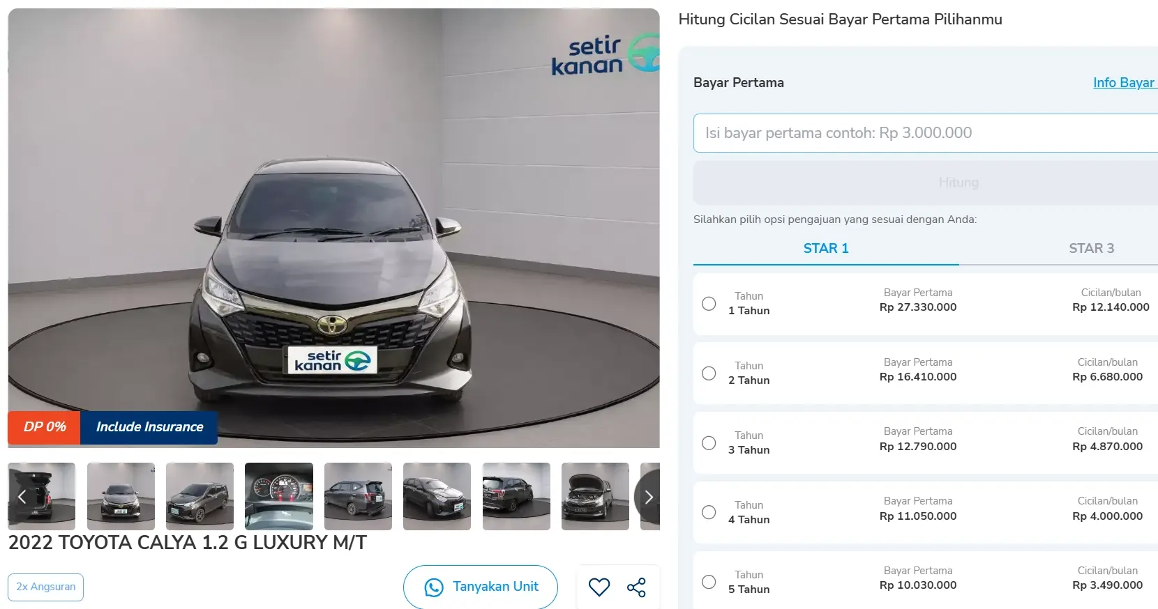 Sobat Setir bisa membawa pulang mobil ini DP 0, cukup menyiapkan pembayaran awal mulai sekitar Rp10 jutaan. Cicilan bulanannya mulai Rp3 jutaan dengan tenor hingga 5 tahun. Berikut simulasi kreditnya.