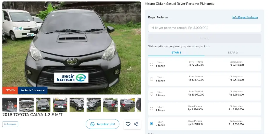 Dengan membeli mobil bekas di Setir Kanan memberi kamu akan mendapatkan keuntungan lebih: pilihan unit prima, simulasi cicilan real‑time, dan tenor fleksibel hingga 5 tahun. Sobat Setir juga bisa cek stok mobil bekas di Denpasar untuk melihat unit yang tersedia saat ini.