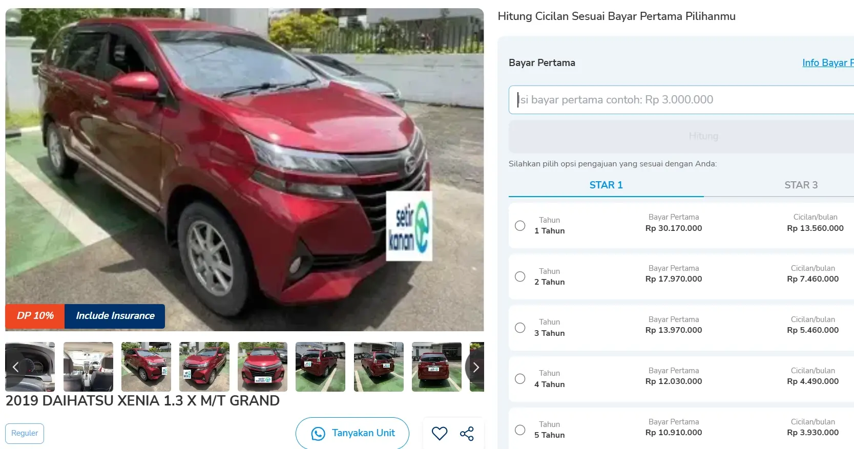 Sobat Setir bisa membawa mobil ini dengan menyiapkan DP 10%, mulai Rp10 jutaan. Cicilan mulai Rp3 jutaan per bulan hingga 5 tahun.