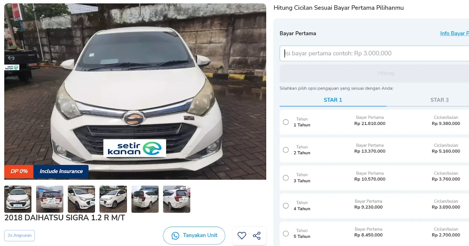 Sobat Setir juga dapat menikmati kemudahan skema pembayaran saat membeli unit di Setir Kanan, berkat tersedia fitur simulasi kredit, promo DP 0%, serta pilihan tenor fleksibel hingga 5 tahun.