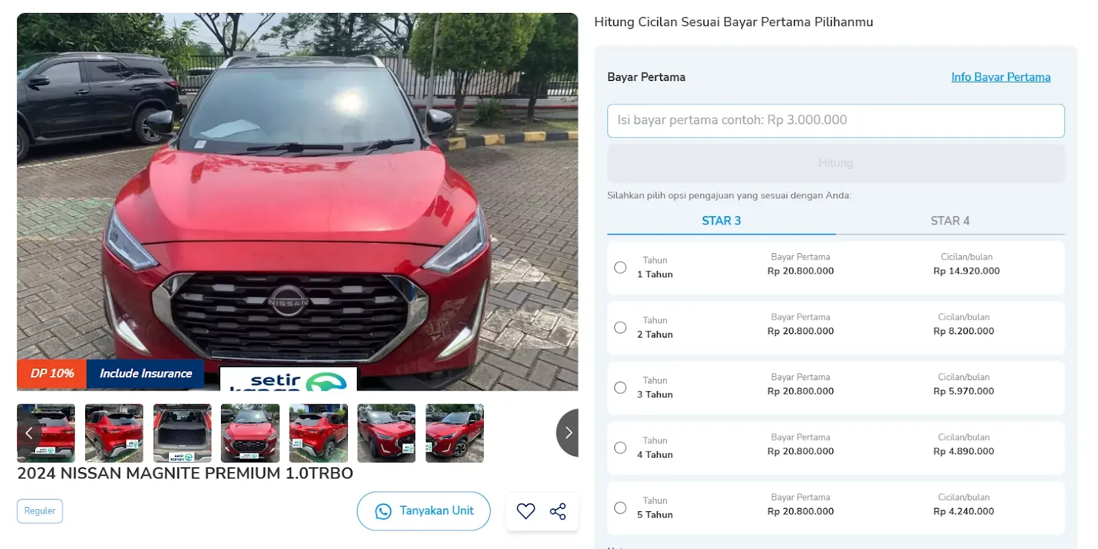 Dengan estimasi DP 10%, mobil ini bisa kamu miliki dengan cicilan mulai Rp 5 jutaan per bulan. Berikut simulasi kreditnya: