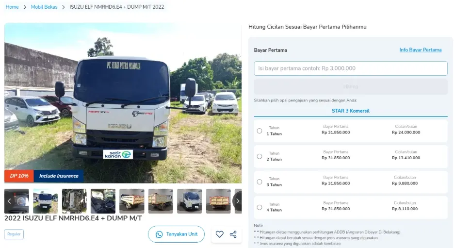 Tertarik? Hitung simulasi kredit Isuzu Traga bekas di Setir Kanan, dengan cicilan mulai 5 jutaan per bulan untuk tenor hingga 4 tahun.