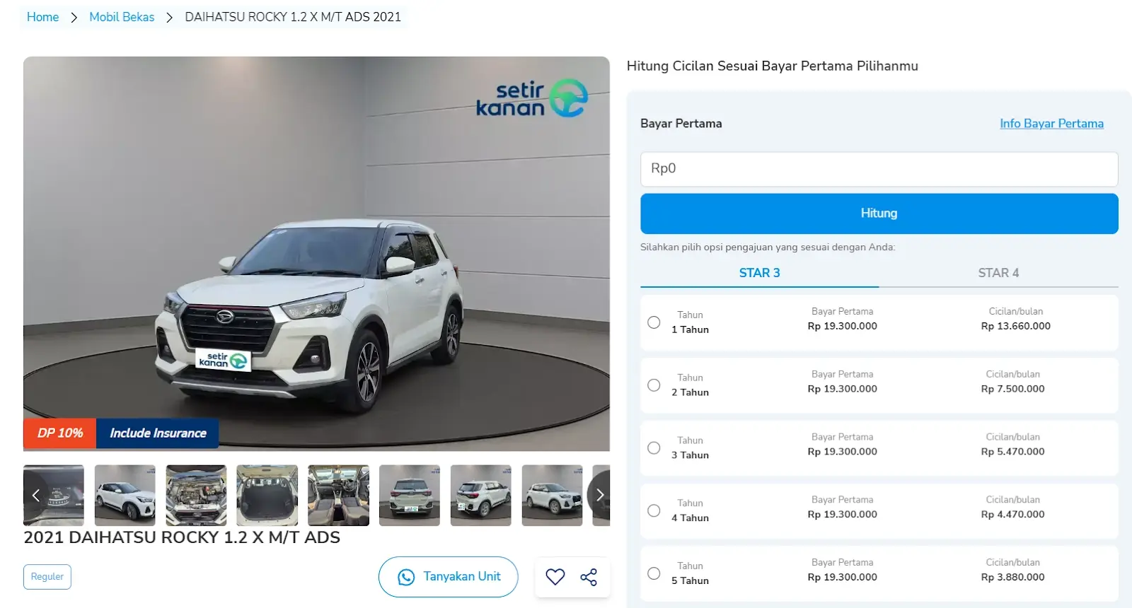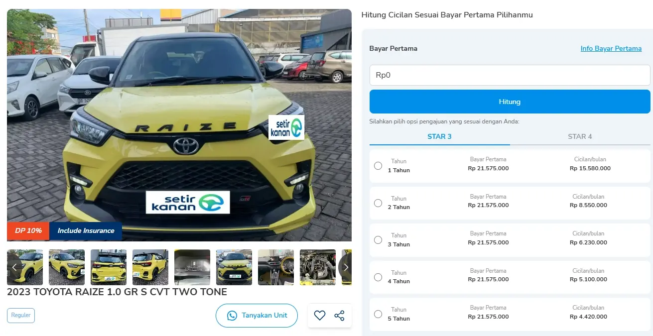 Pembelian mobil bekas di Setir Kanan bisa kamu dapatkan dengan cicilan mulai dari Rp 70 ribuan/hari. Pilihan merek-merek mobil yang ditawarkan pun bermacam-macam.