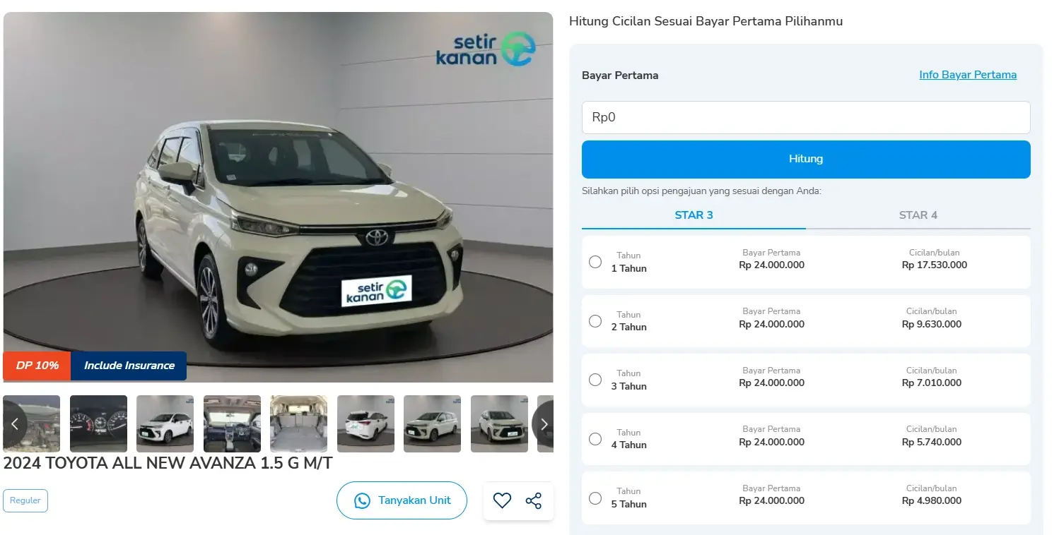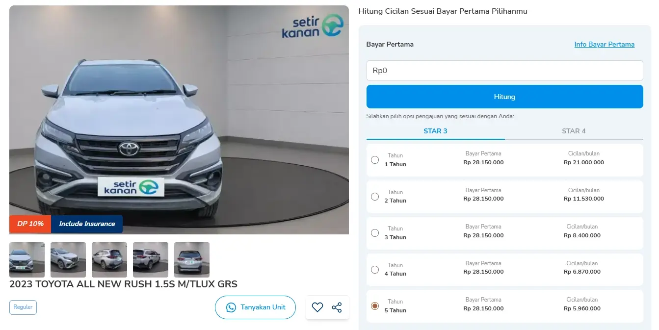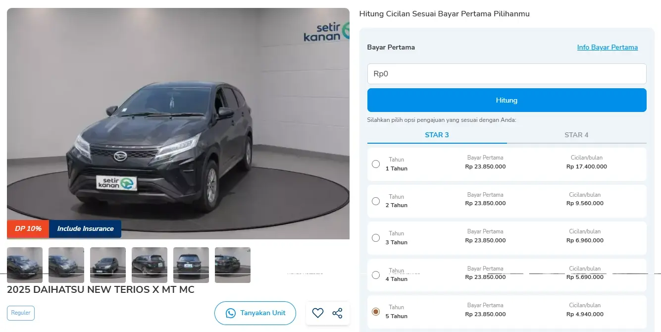 Mobil ini bisa kamu miliki dengan pembayaran pertama mulai Rp24 jutaan dan cicilan mulai dari Rp4 jutaan per bulan untuk tenor 5 tahun. Skema ini memberi fleksibilitas bagi Sobat Setir untuk menyesuaikan pembayaran sesuai kondisi finansial. Berikut simulasi kreditnya