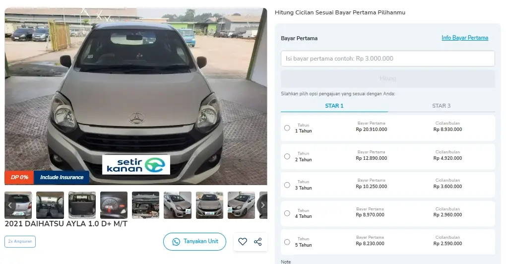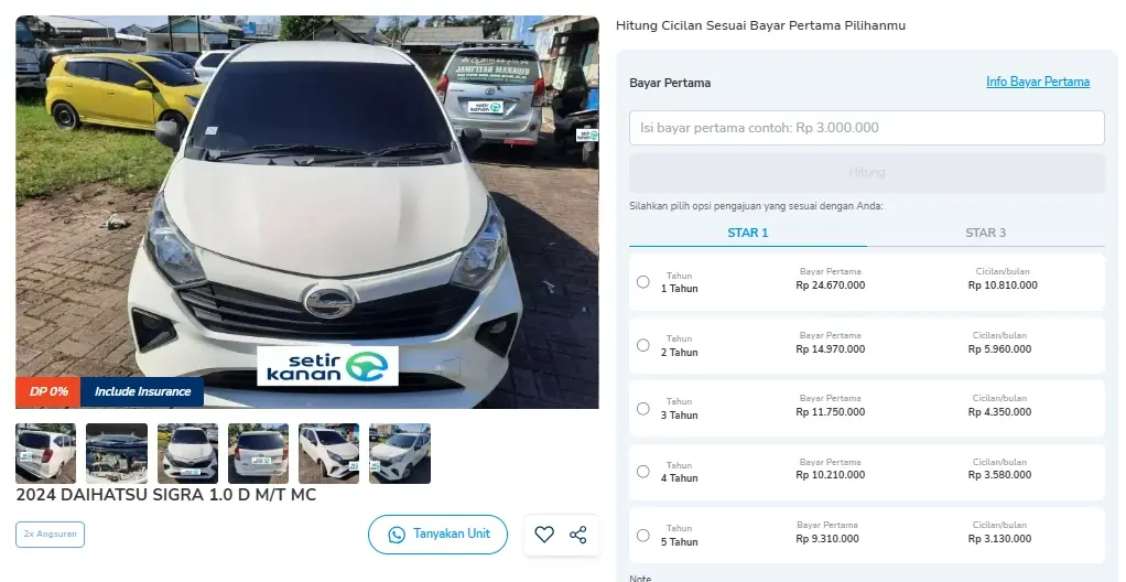 Jika Sobat Setir tertarik, kamu bisa bawa pulang mobil ini dengan DP 0%, cukup bayar 2x angsuran dan sudah otomatis memotong tenor. Cicilan mulai dari Rp 3 jutaan per bulan untuk tenor 5 tahun.