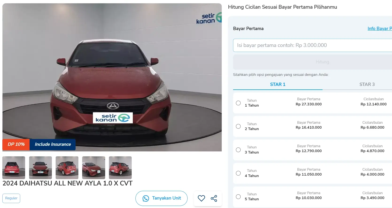 Sobat Setir bisa membawa pulang mobil ini dengan DP 10% dan cicilan mulai dari 3 jutaan dan tenor 5 tahun sehingga bisa lebih hemat dan praktis. Berikut simulasi kreditnya: